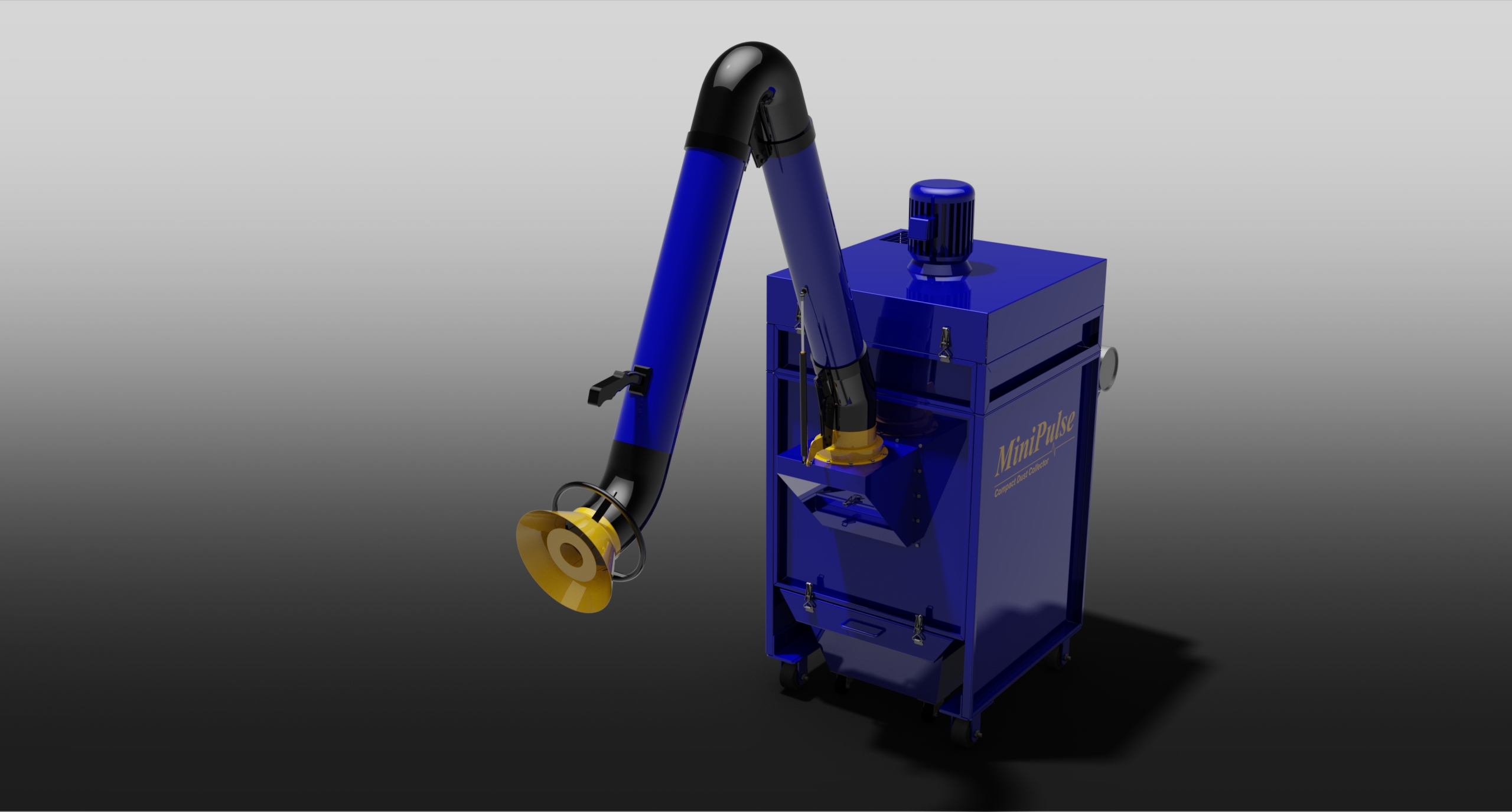 The MiniPulse combines a very efficient fan, washable filter cartridge and dust storage bin in a single assembly with the fan and motor being positioned on the clean air side of the unit. The whole assembly is mounted on wheels for easy movement in confined spaces